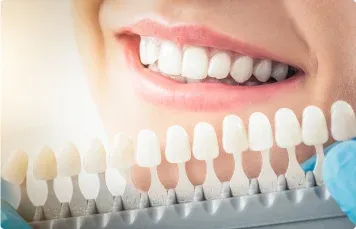 Veneers are thin pieces of porcelain or plastic cemented over the front of your teeth to change their color or shape. Veneers are used on teeth with uneven surfaces or are chipped, discolored, oddly shaped, unevenly spaced or crooked.
